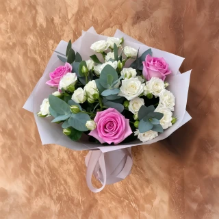 Букет "Мгновение" - это воплощение свежести и элегантности. Он состоит из изысканных одноголовых и кустовых роз, которые подарят Вам нежность и романтику. Цветочные бутоны будут радовать Вас яркими красками и неповторимым ароматом. Зелень, украшающая букет, добавляет естественности и создает гармоничный контраст. Крафтовая упаковка придает букету особый шарм и природную изысканность. Цветы собраны с любовью и заботой, чтобы подарить вам незабываемые моменты счастья и умиротворения. Подарите "Мгновение" и ощутите все прелести летнего сезона прямо у себя дома.