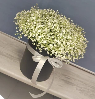 Утонченная композиция цветов из нежной кремовой гипсофилы, представленная в элегантной шляпной коробке, словно излучает нежность и изысканность. Каждый бутон гипсофилы, словно облаченный в светлое платье, призван приковывать взгляды и вызывать восторг. Эти цветы, символизирующие чистоту и нежность, создают атмосферу спокойствия и умиротворения. Шляпная коробка придает композиции особый шарм и изысканность. Подарите эту композицию и пусть она наполнит жизнь вашего близкого человека нежностью и красотой.